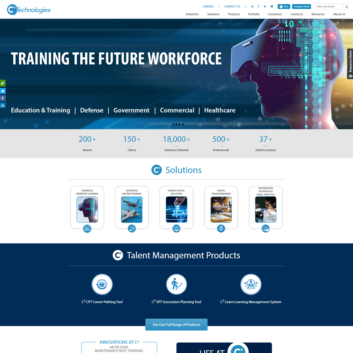 Navigating the training and services spheres of Defense, Civilian, and Commercial Industries, C² Technologies stands as a beacon of excellence. We are a global powerhouse, dedicated to offering products, services, and solutions that provide human performance improvement that enable our clients to achieve mission success through readiness and operational excellence. We achieve this through the seamless integration of emerging technologies, digital transformation, and unparalleled potential of human talent. Our esteemed clientele includes the U.S. Department of Defense, U.S. Federal Agencies, leading private industries, and international military forces.